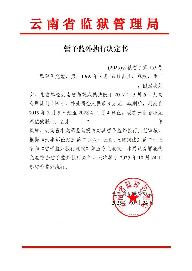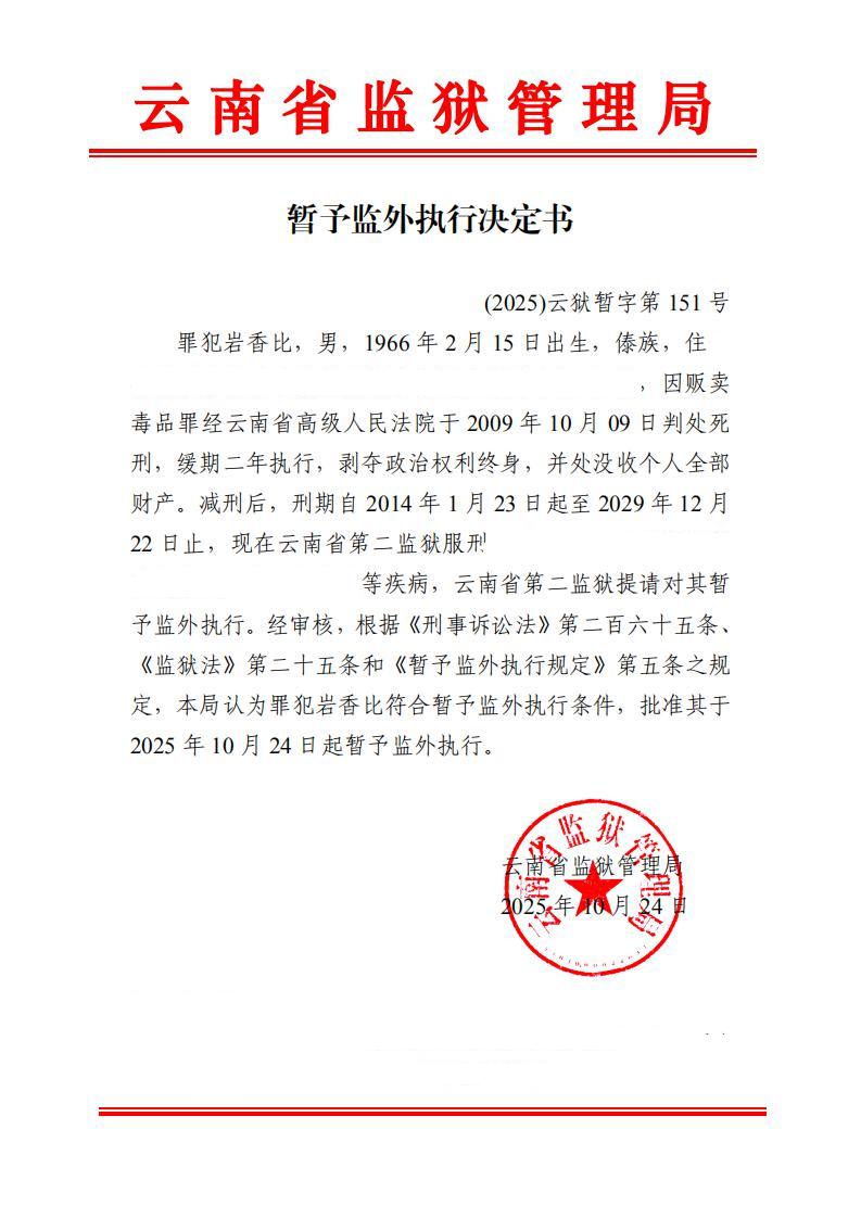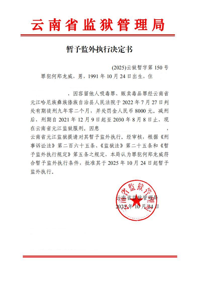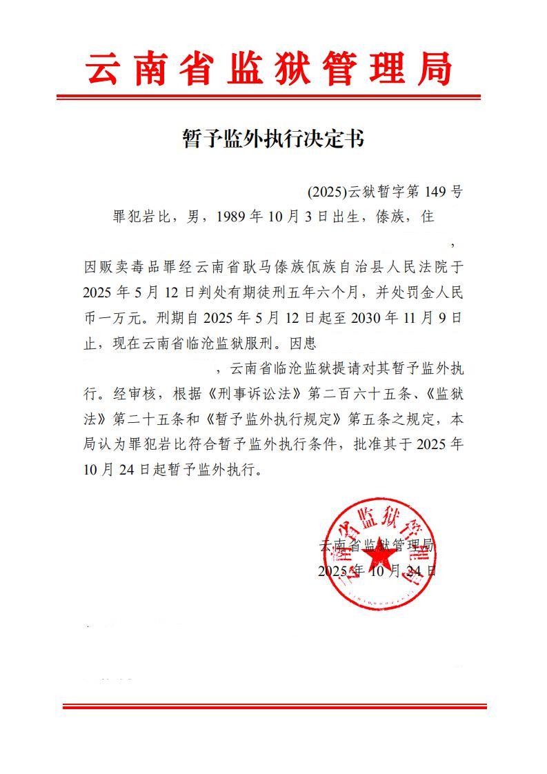 暂予监外执行决定书(2025)第149-159号