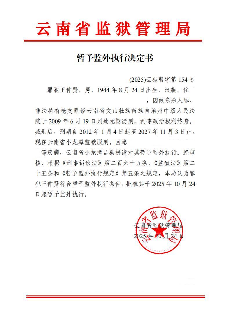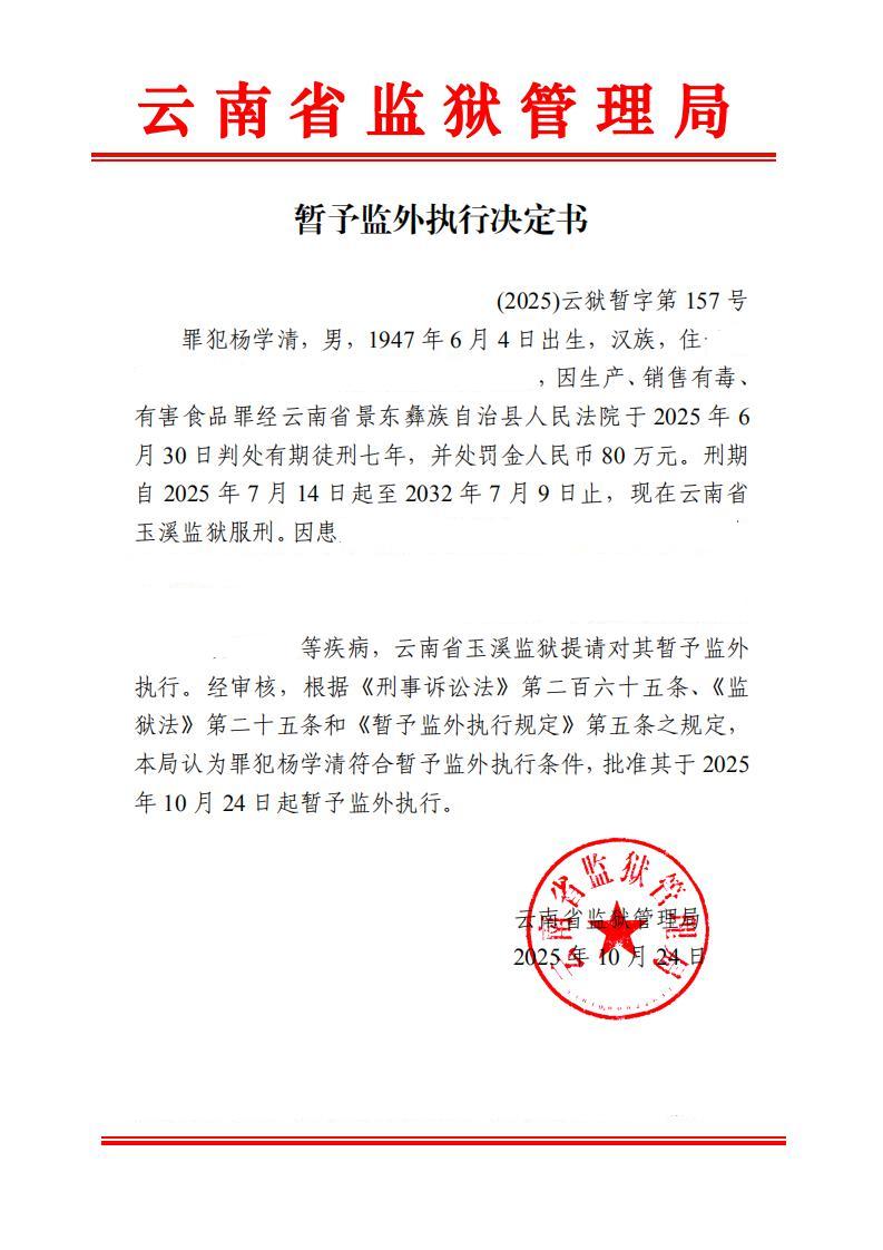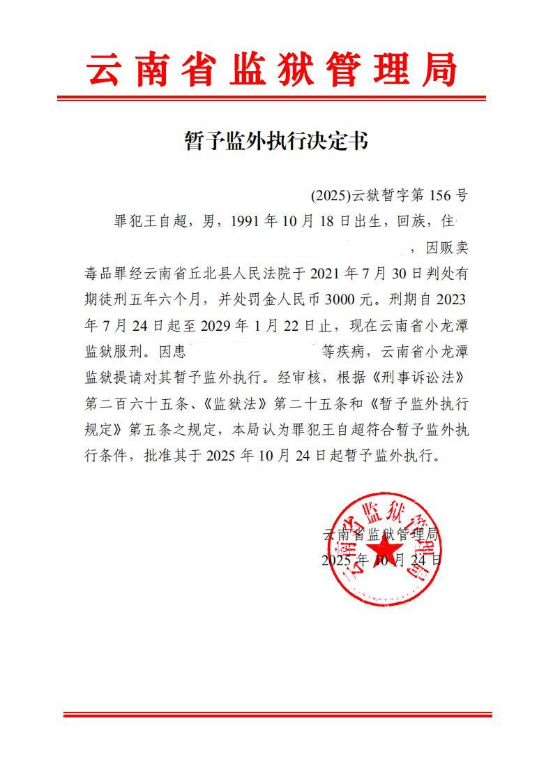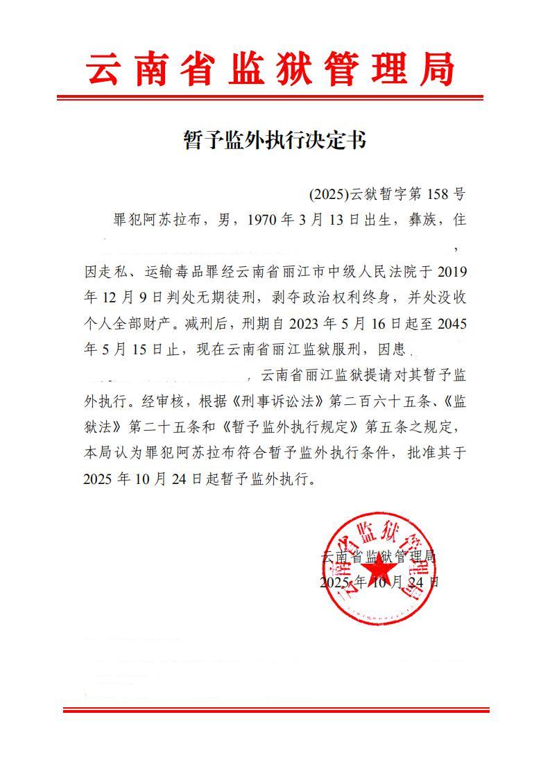暂予监外执行决定书(2025)第149-159号