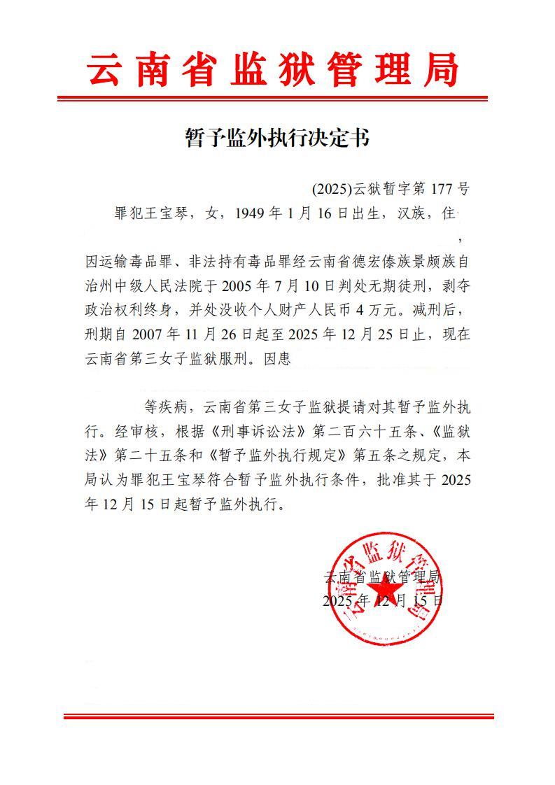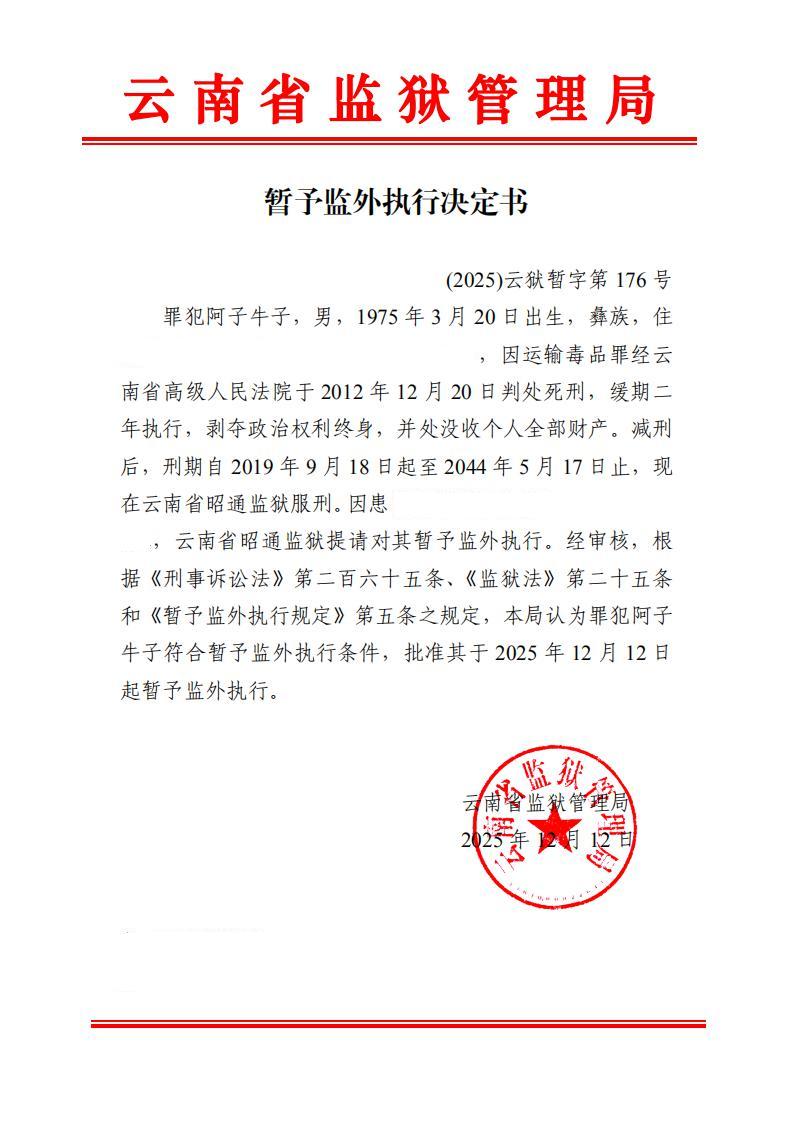 暂予监外执行决定书(2025)第176-178号