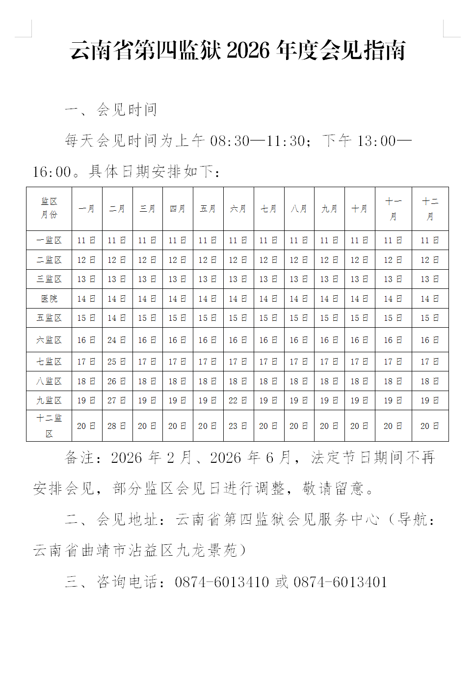 云南省第四监狱2026年度会见指南