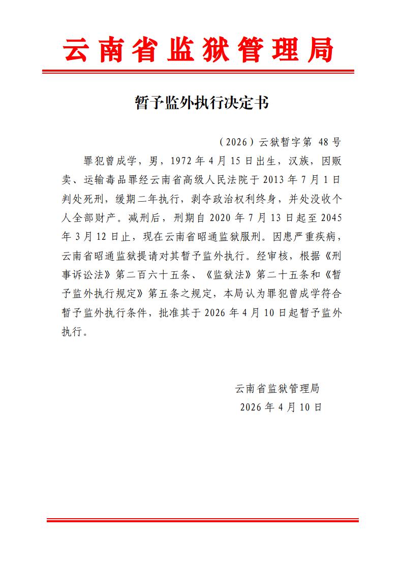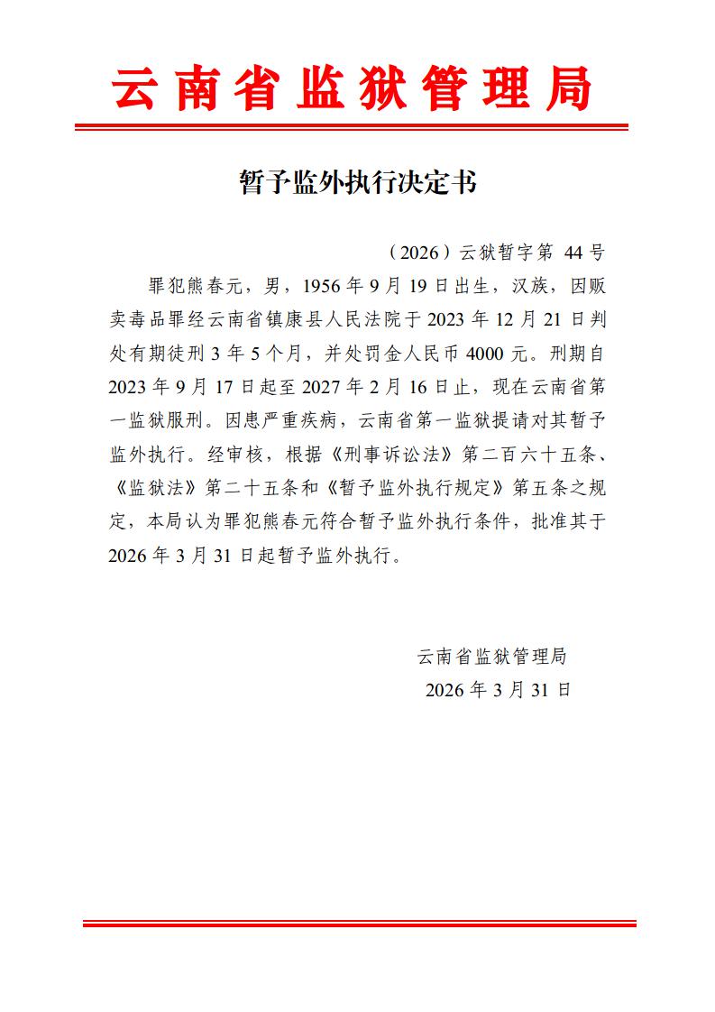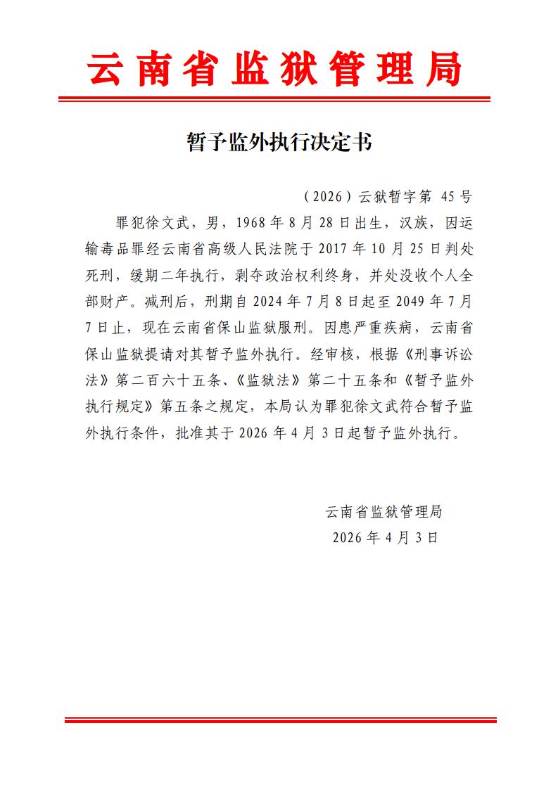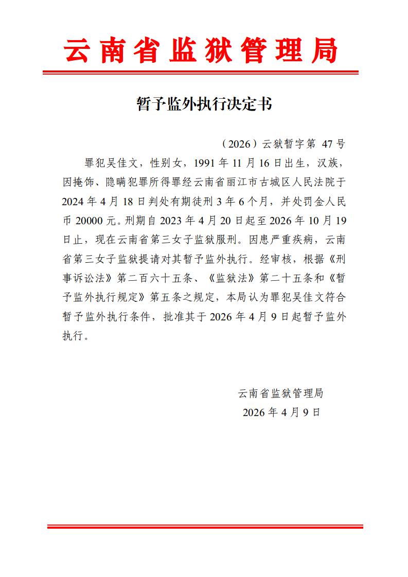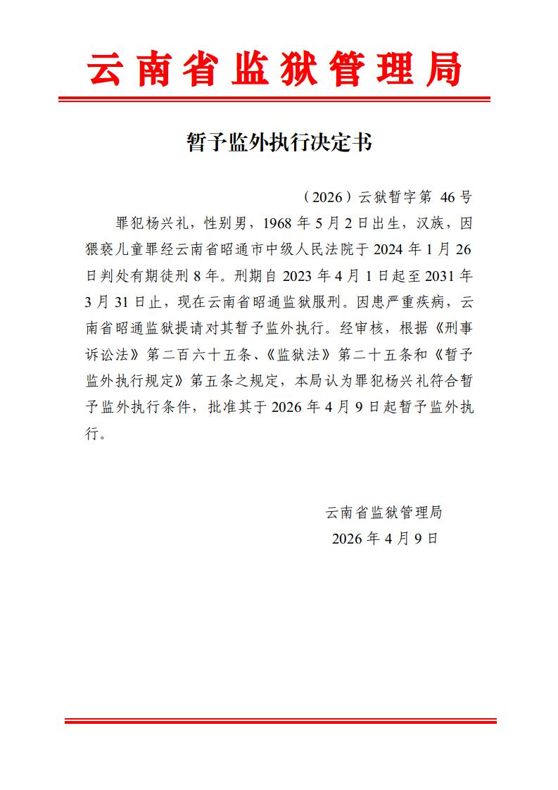 暂予监外执行决定书(2026)第44-48号